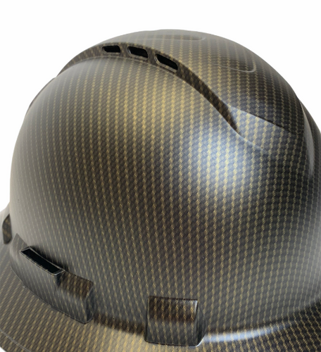 Custom Hydro Dipped Gold Carbon Fiber Ridgeline Full Brim Vented Hard Hat