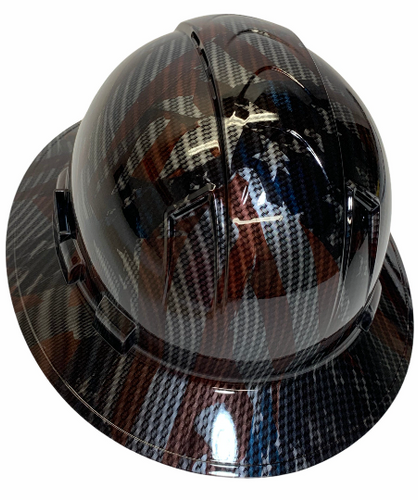 Custom Hydro Dipped Carbon Fiber American Flags Ridgeline Full Brim Vented Hard Hat