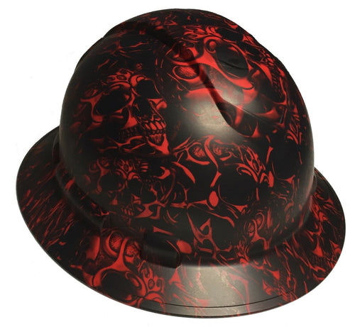 Hard Hat Ridgeline Full Brim Custom Red Tribal Skulls