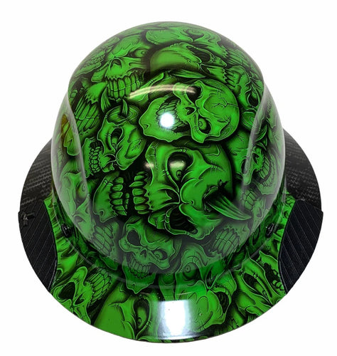 Custom Hydro Dipped Black and Alien Green Insanity Skulls Lift DAX Fifty 50 HDF50C-20GC Carbon Fiber Full Brim Hard Hat