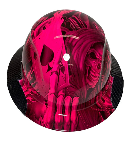 Custom Hydro Dipped Black and Hot Pink Ace of Skulls Lift DAX Fifty 50 Carbon Fiber HDF50C-19OC Full Brim Hard Hat