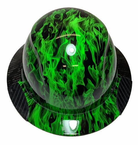 Custom Hydro Dipped Black and Green Flames Lift DAX Fifty 50 Carbon Fiber HDF50C-19OC Full Brim Hard Hat