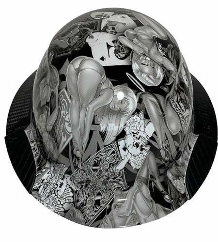 Custom Hydro Dipped Black and White Naughty Boy Lift DAX Fifty 50 Carbon Fiber HDF50C-19WC Full Brim Hard Hat