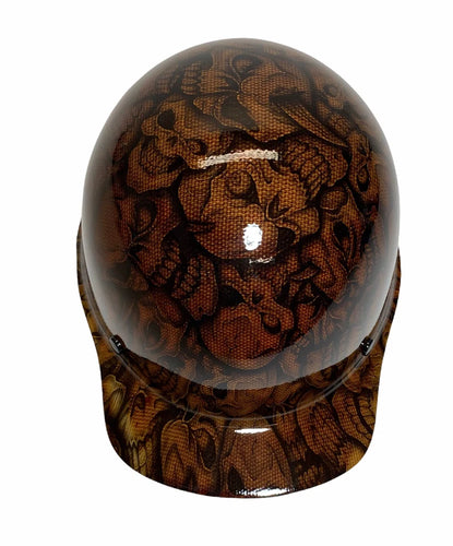 Custom Hard Hat HOK Gold Metallic Filigree Skulls MSA SkullGard Cap Style