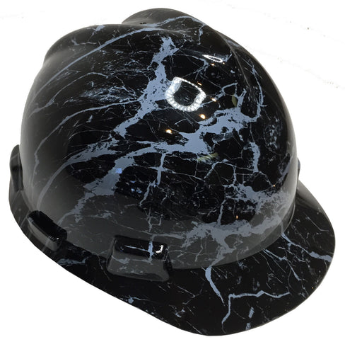 Hydro Dipped Custom Hard Hat MSA Cap Style White On Black Marble