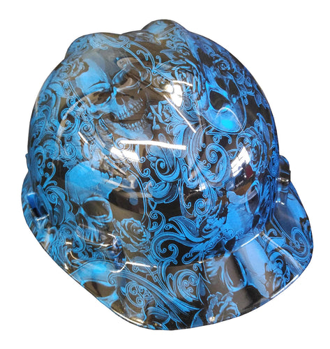 Hydro Dipped Hard Hat MSA Cap Style Blue Filigree Skulls