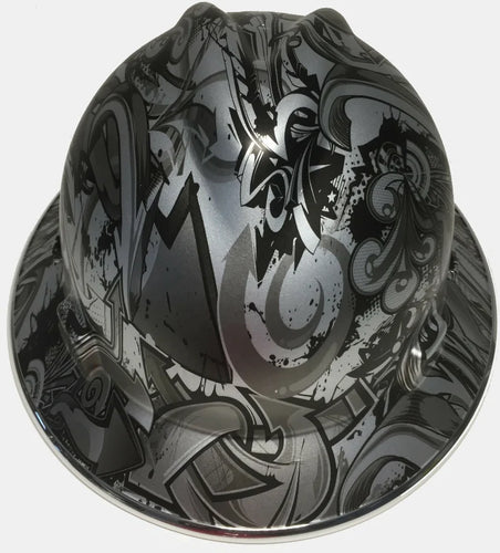 Custom Hard Hat MSA V-Gard Full Brim Silver Metallic Graffiti