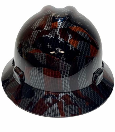 Hydro Dipped Carbon Fiber American Flags High Gloss MSA V-Gard Full Brim