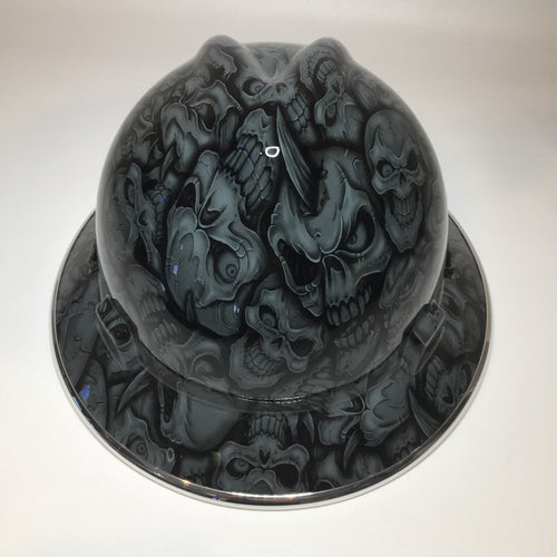 Hydro Dipped Custom Hard Hat MSA Full Brim Grey Insanity With Chrome EdgeGard