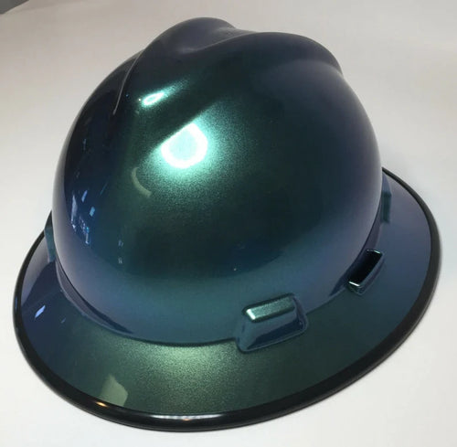 Custom Painted Hard Hat Blue Green Chameleon with Black Edgegard MSA Full Brim