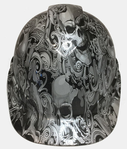Hydro Dipped Custom Hard Hat Ridgeline Cap Style Pearl White Filigree Skulls