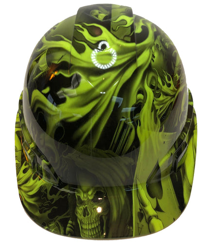 Custom Hydro Dipped Hard Hat Ridgeline Cap Style Hi Vis Green Ace Of Skulls