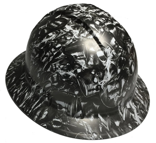 Custom Hard Hat White Brotherhood Skulls Full Brim Ridgeline