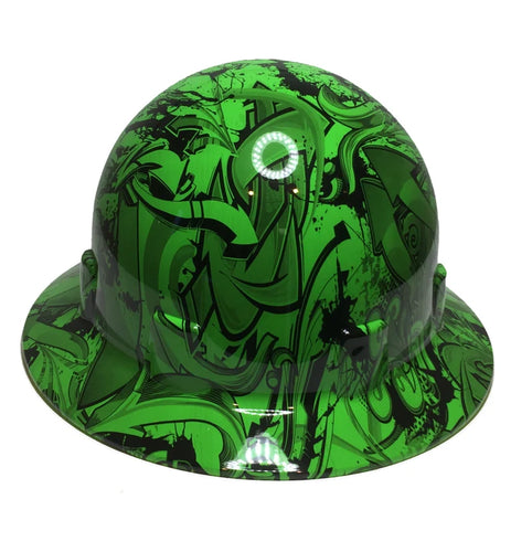 Hydro Dipped Custom Hard Hat Alien Green Graffiti Pyramex SL Series Sleek Shell Full Brim