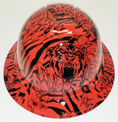 Custom Hydro Dipped Hard Hat Red King Tiger Full Brim Ridgeline