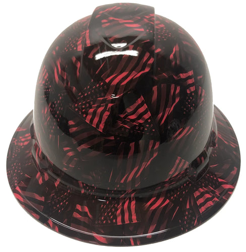 Custom Hydro Dipped Hard Hat Ridgeline Full Brim Carbon Fiber Negative American Flags