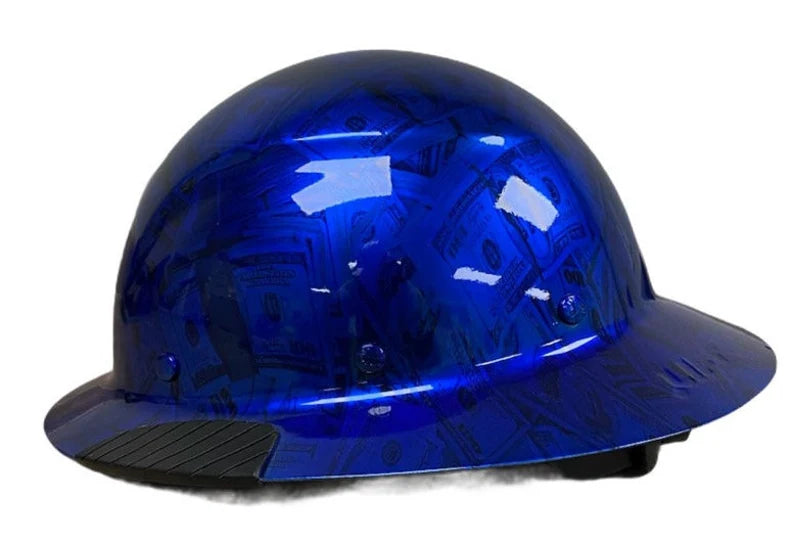 Custom Blue Kandy 100 Dollar Bills Lift DAX Carbon Fiber HDC-15KG Full Brim Hard Hat