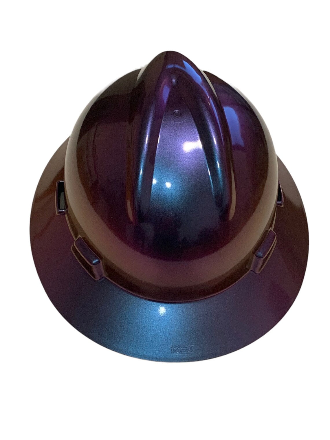 Custom Blue Purple Chameleon Hard Hat MSA V-Gard Full Brim