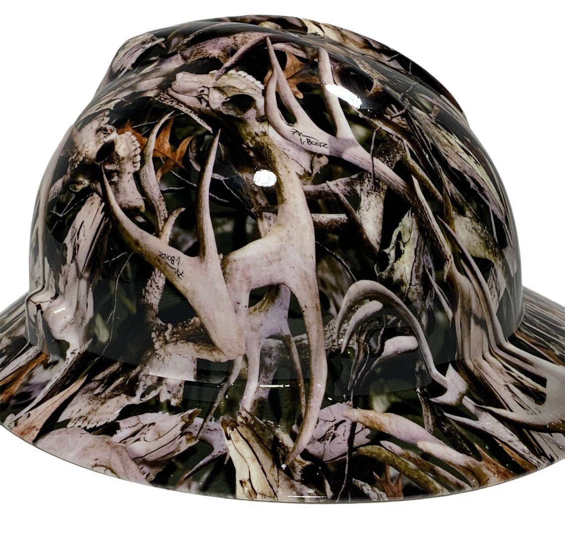 Custom Hard Hat Black Bonz Camo Hydro Dipped Full Brim MSA VGard