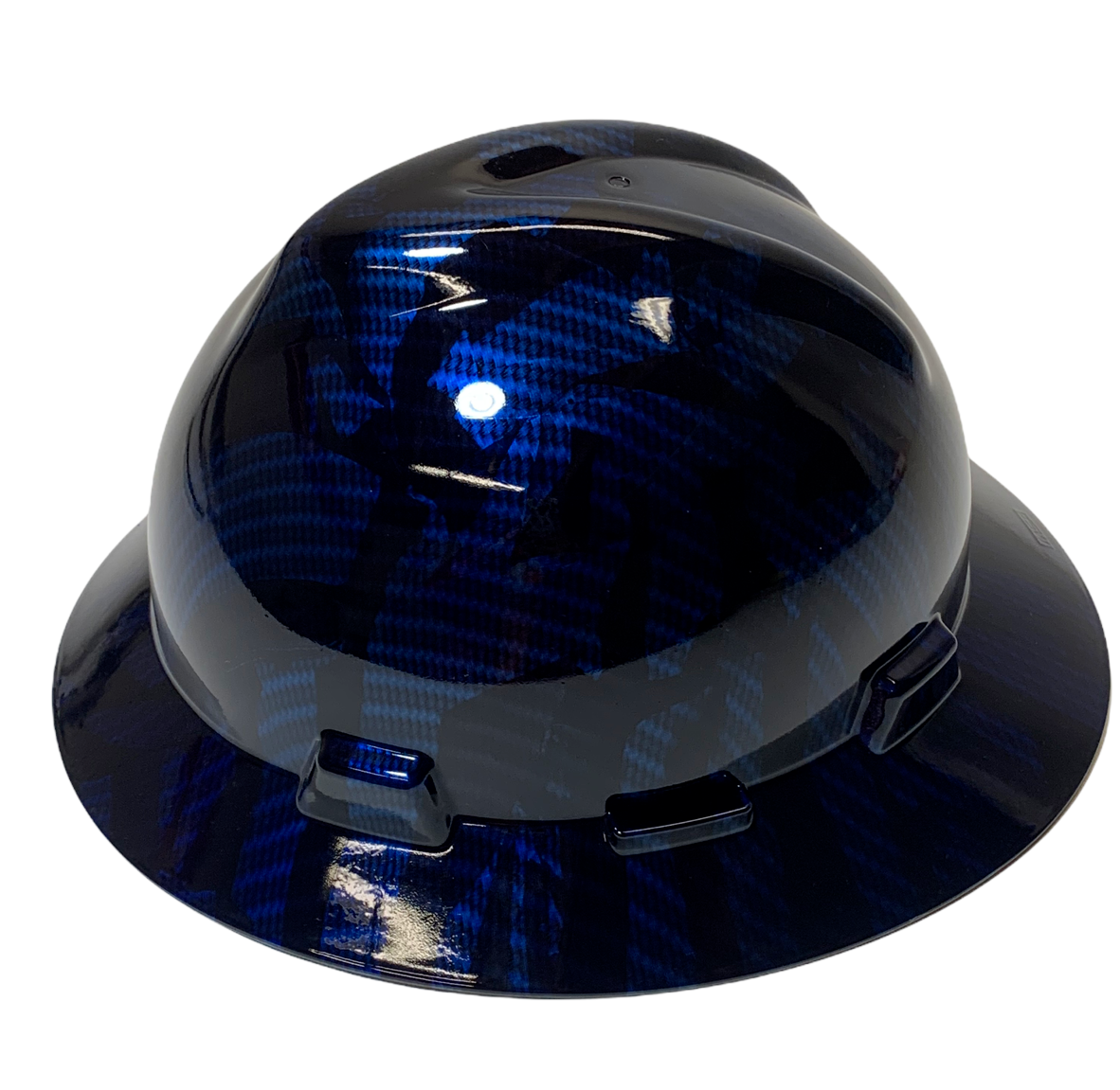 Custom Hard Hat Blue Kandy Carbon Fiber Flags Hydro Dipped Full Brim MSA
