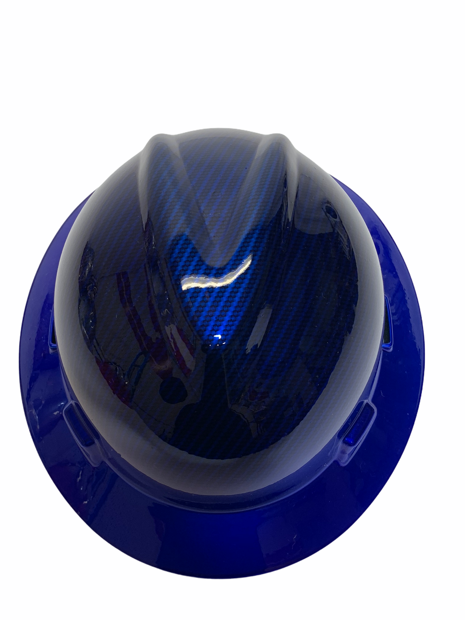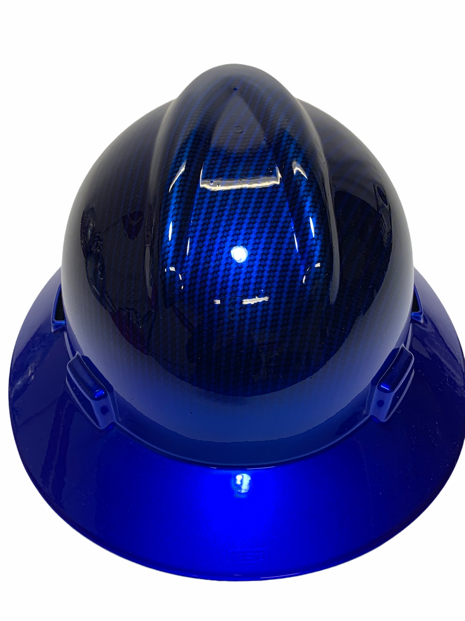 Custom Hard Hat Blue Kandy Carbon Fiber w/ Kandy Blue Brim Hydro Dipped Full Brim MSA