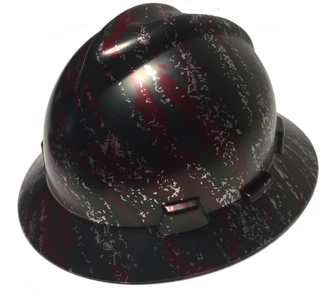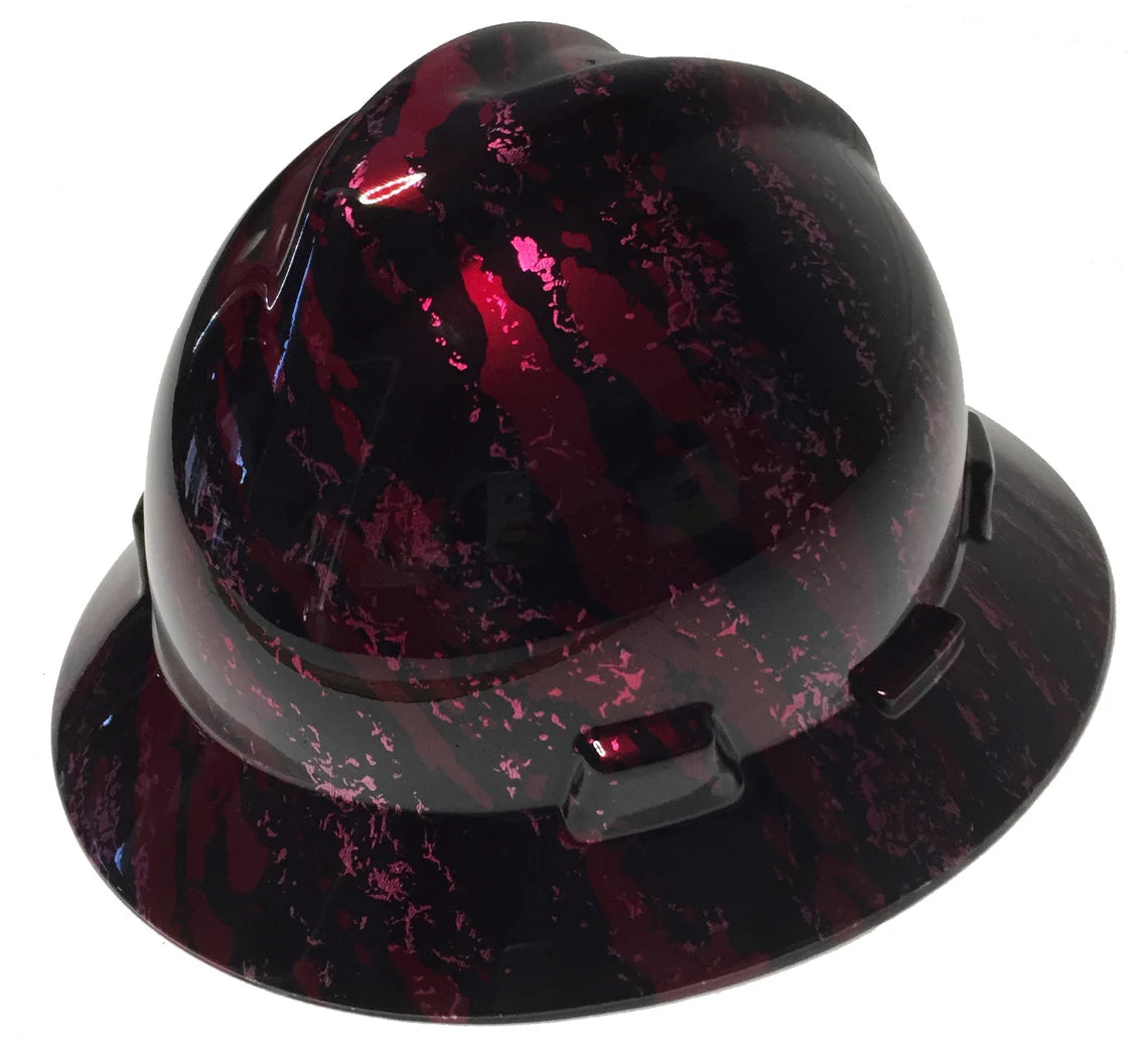 Custom Hard Hat Brandywine Red Marble Splash MSA V-Gard Full Brim