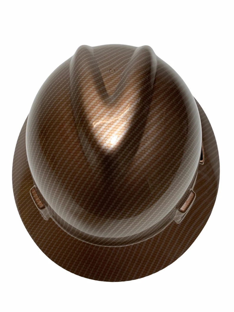 Custom Hard Hat Copper Carbon Fiber Hydro Dipped MSA V-Gard Full Brim