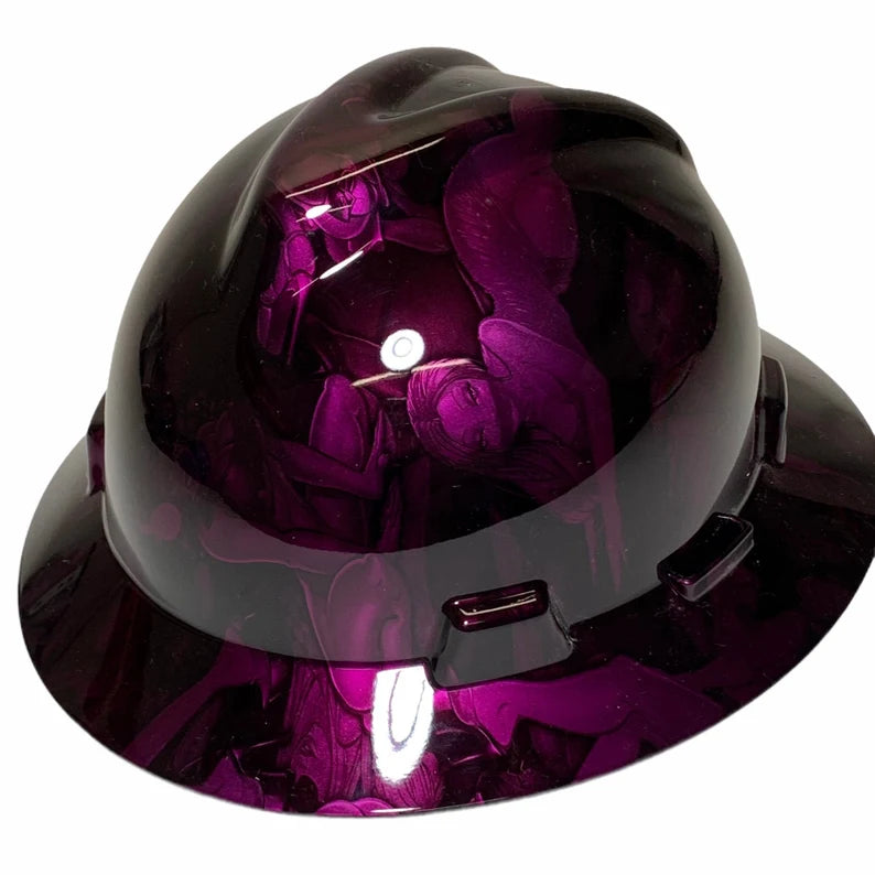 Custom Hard Hat Deep Purple Kandy No Evil Naughty MSA V-Gard Full Brim