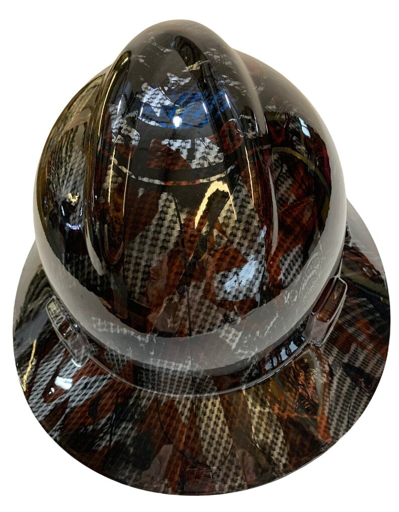 Custom Hard Hat Hydro Dipped Carbon Fiber American Flags Fantasy Chic HG MSA V-Gard Full Brim