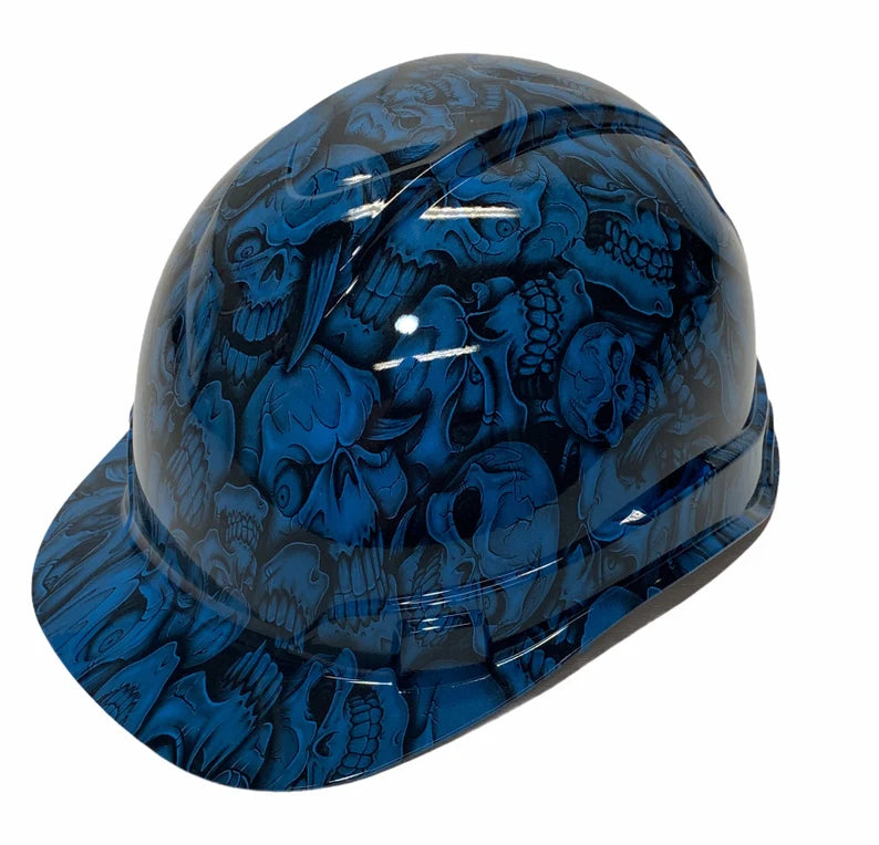 Custom Hard Hat Light Blue Insanity Skulls Skin Cap Style Ridgeline