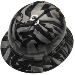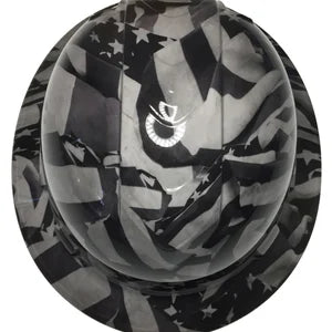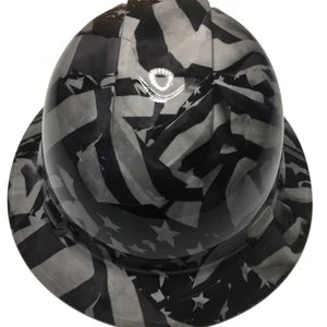 Custom Hard Hat Light Gray Midnight American Flags Full Brim Ridgeline