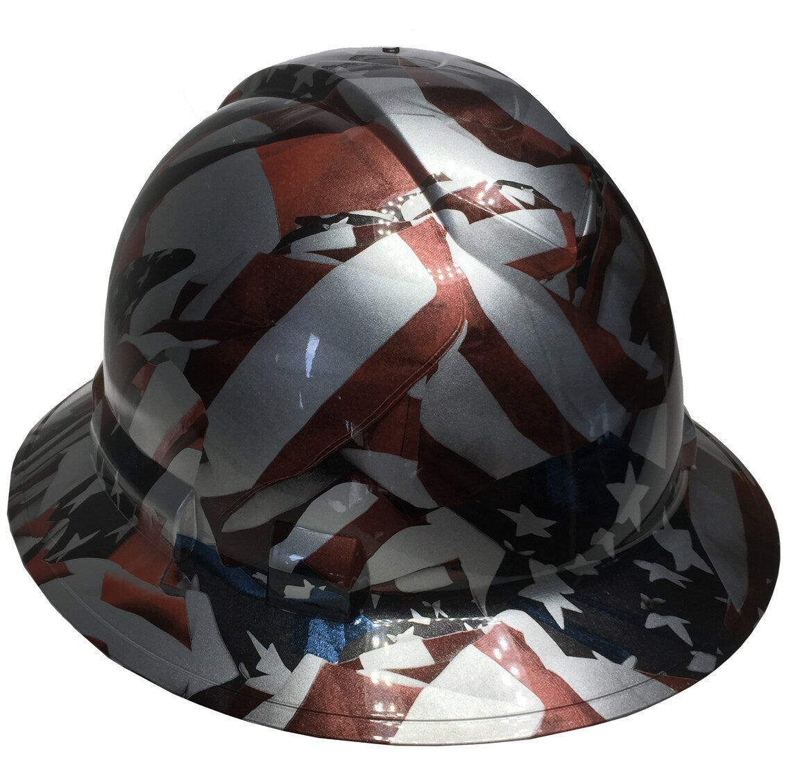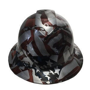 Custom Hard Hat Metallic Silver American Flags Full Brim Ridgeline