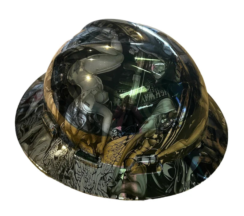 Hydro Dipped MSA Full Brim Hard Hat Custom Fries Satin Finish With Black EdgeGard
