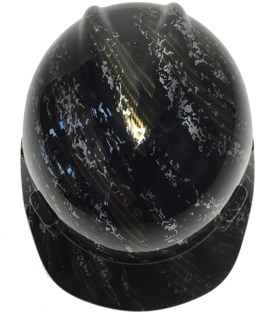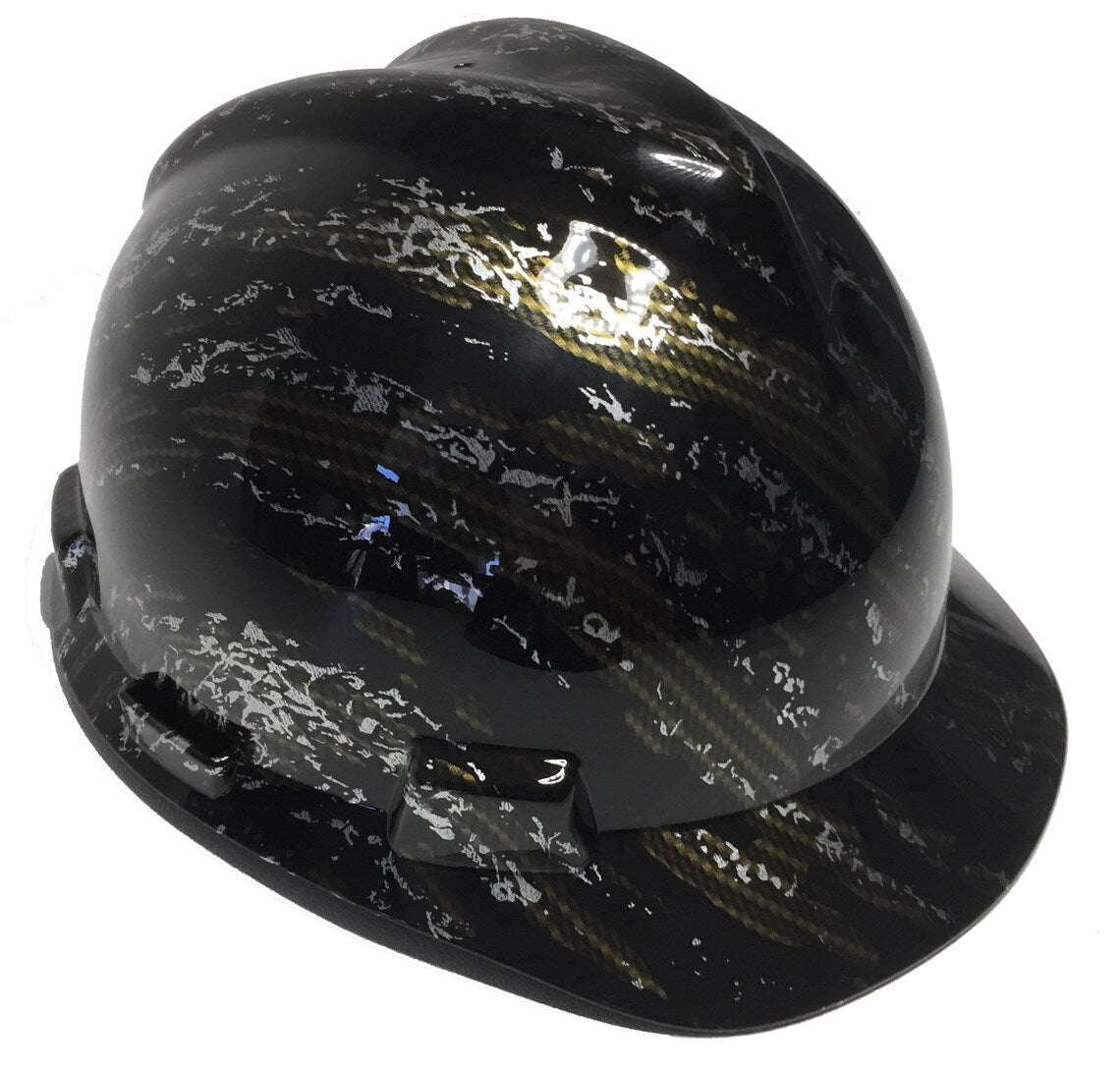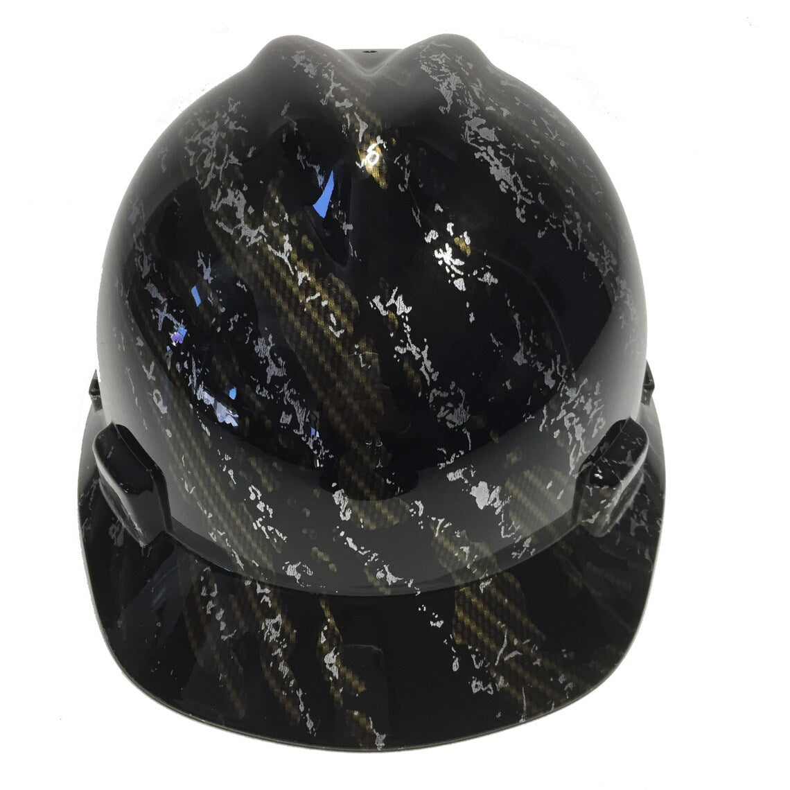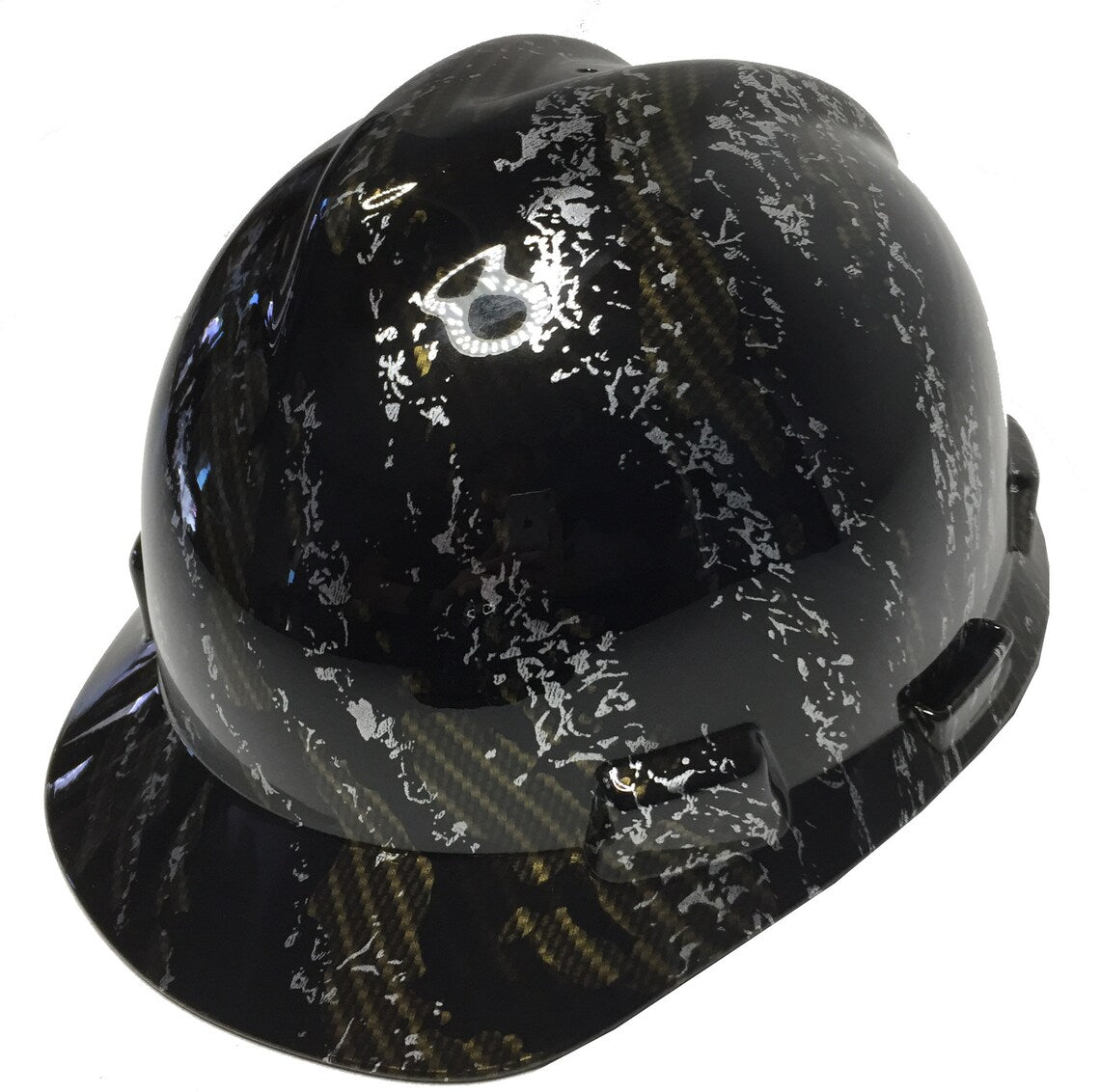 Custom Hard Hat MSA V-Gard Cap Style Hydro Dipped Gold Carbon Fiber Marble Splash