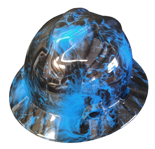 Custom Hard Hat MSA V-Gard Full Brim Blue Flaming Skulls