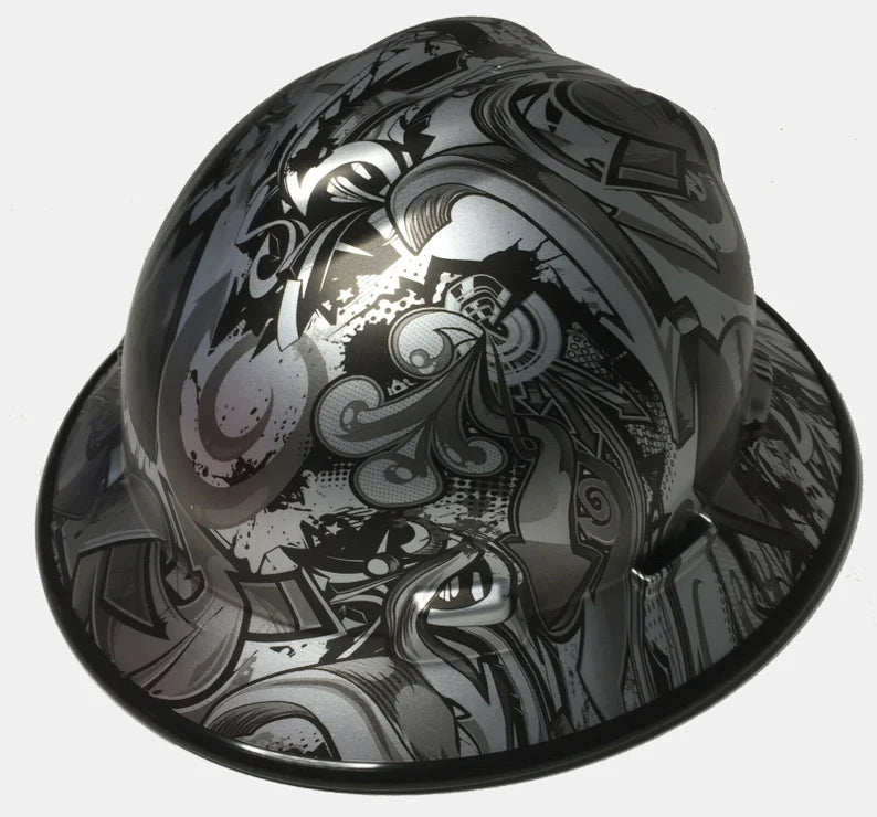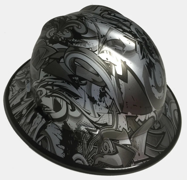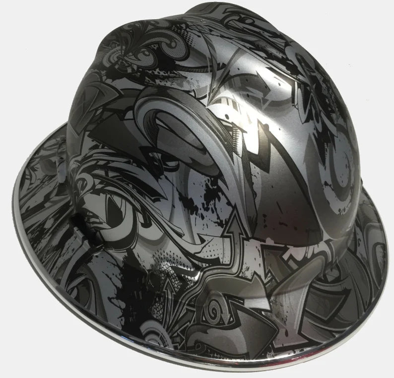 Custom Hard Hat MSA V-Gard Full Brim Silver Metallic Graffiti