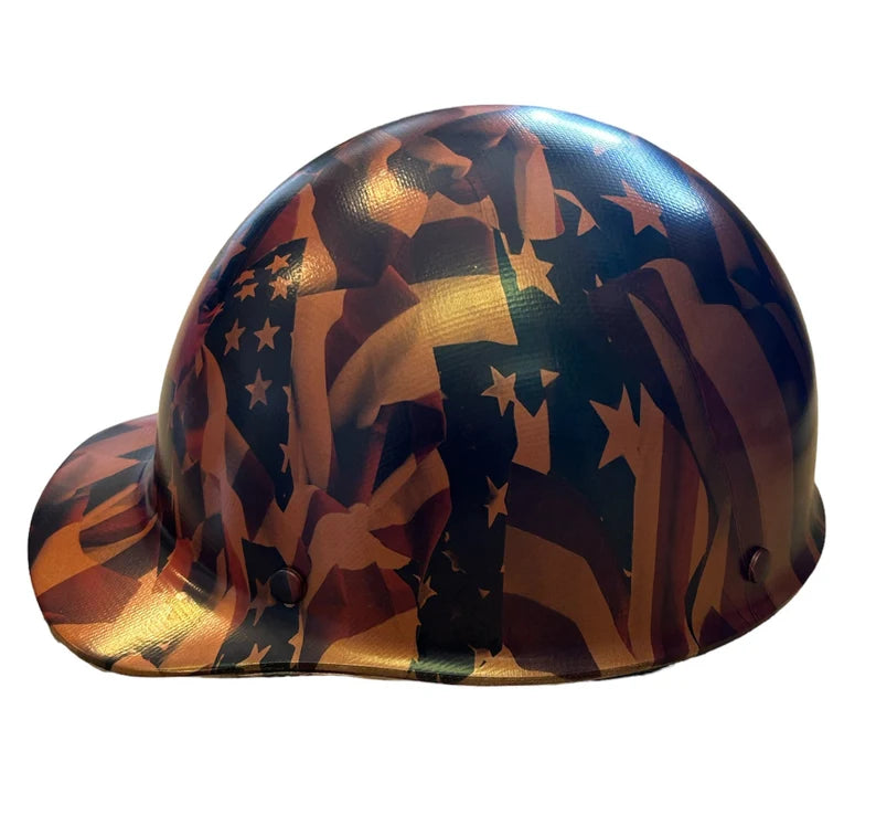 Custom Hard Hat Penny Copper Metallic American Flags MSA SkullGard Cap Style