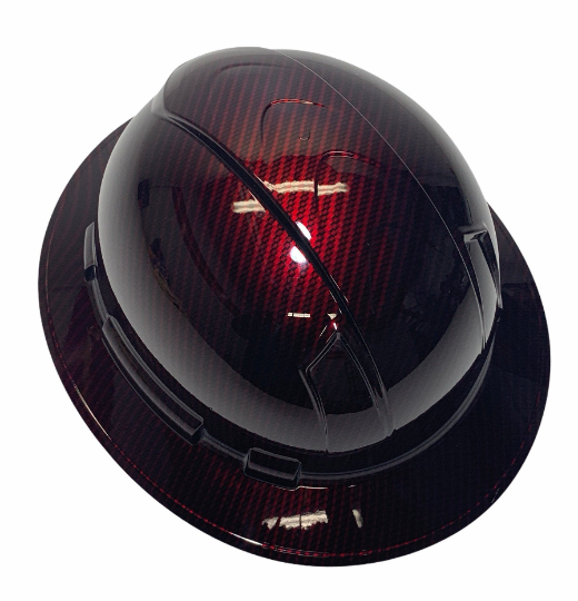 Custom Hard Hat Red Kandy Carbon Fiber Hydro Dipped Full Brim Ridgeline