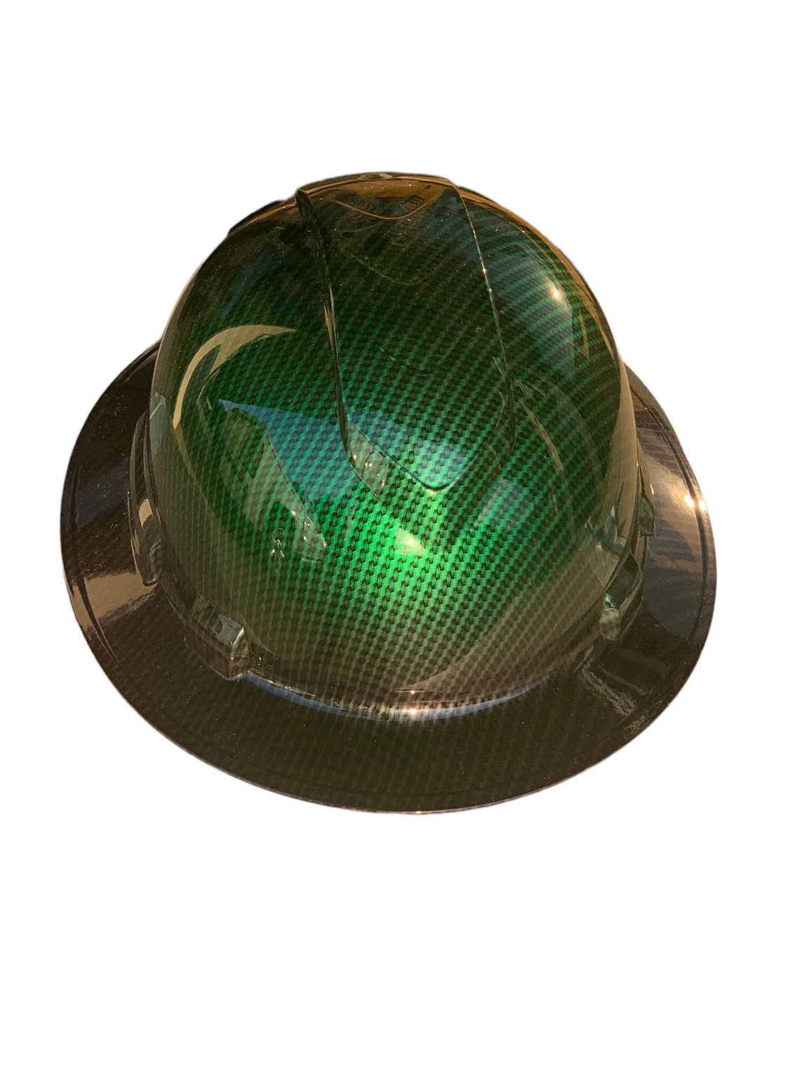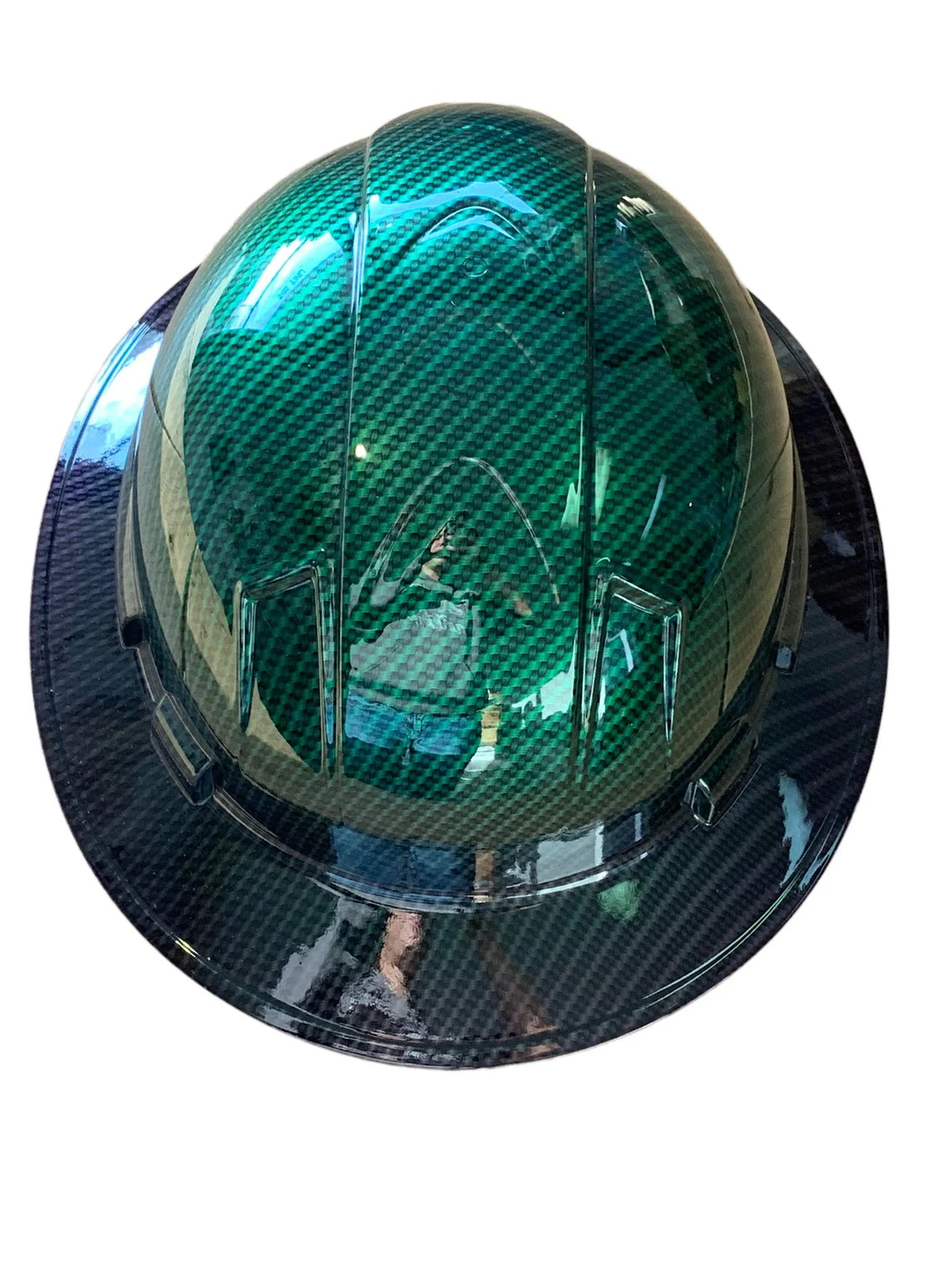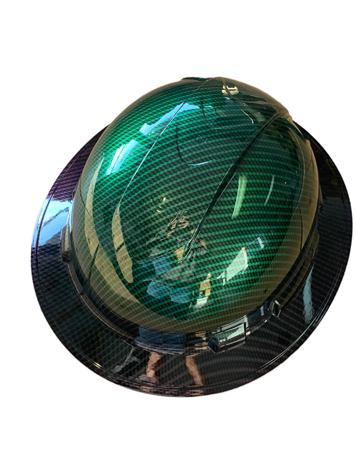 Custom Hard Hat Ridgeline Full Brim Green Purple 2 Toned Translucent Carbon Fiber Hydro Dipped