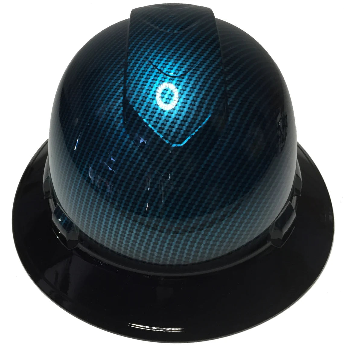 Custom Hard Hat Ridgeline Full Brim Light Blue Kandy Translucent Carbon Fiber Hydro Dipped With Black Brim