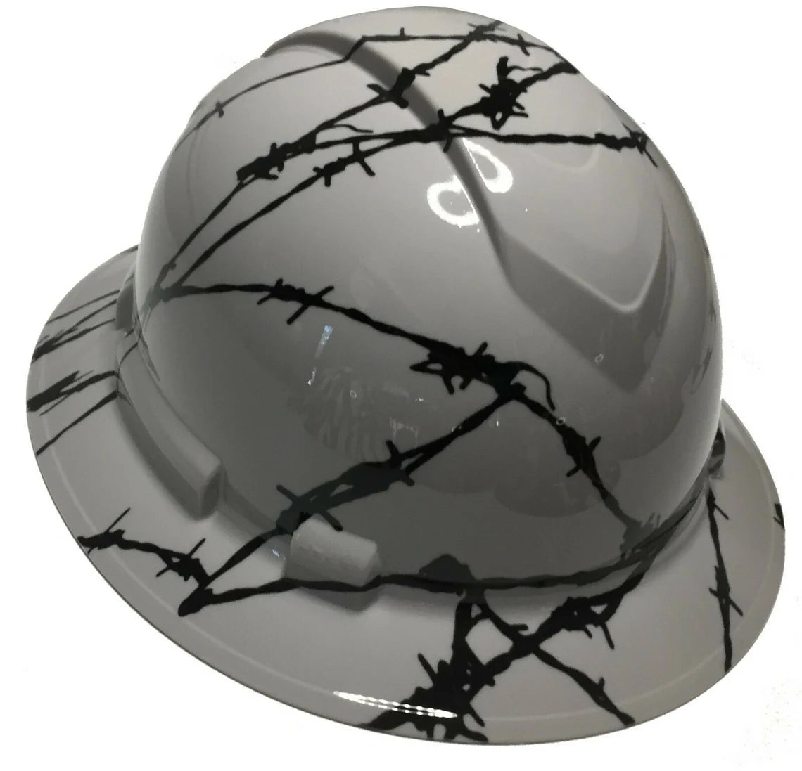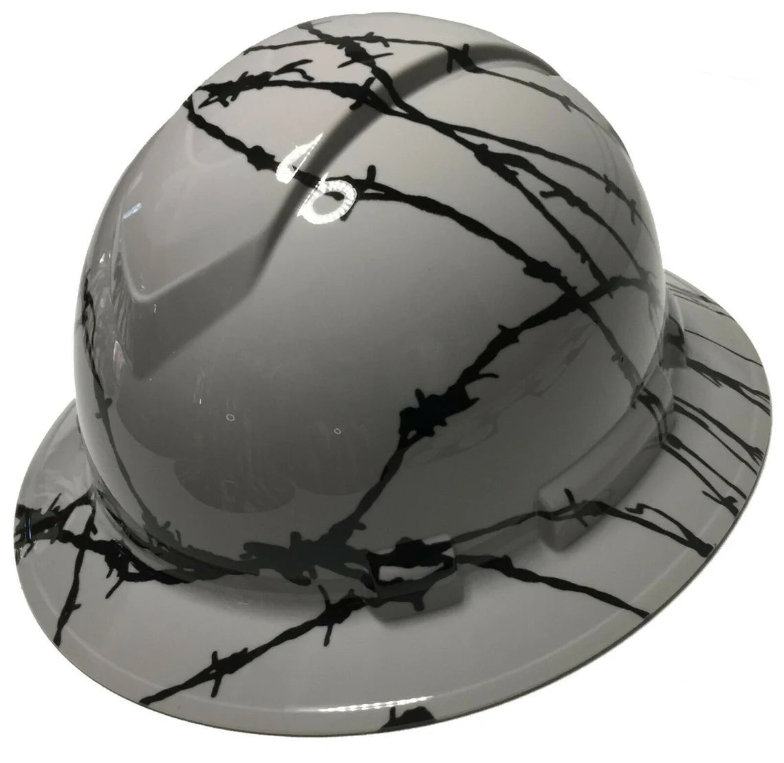 Custom Hard Hat Ridgeline Full Brim Light Gray Barbed Wire