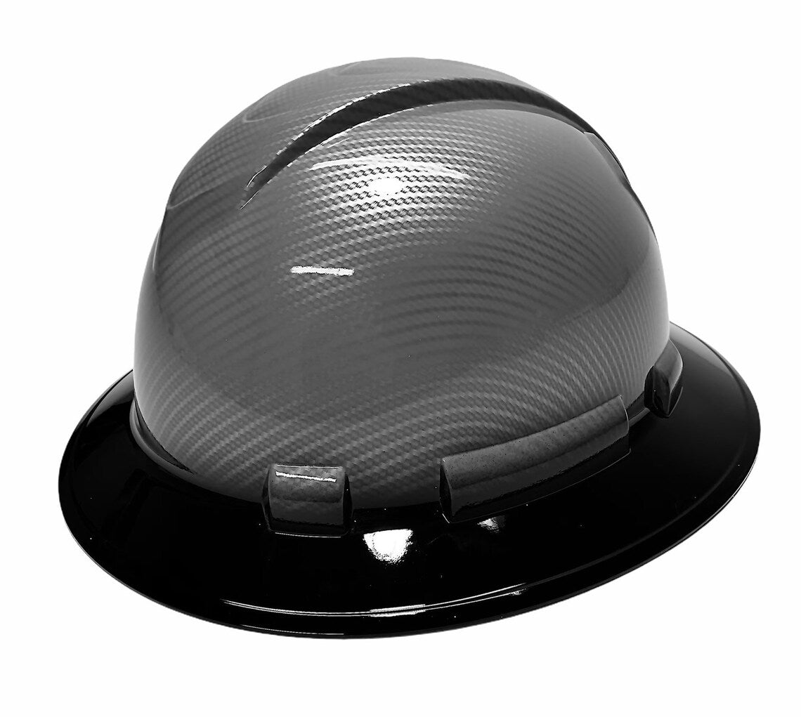 Custom Hard Hat Silver Carbon Fiber Hydro Dipped With Black Rim Full Brim Ridgeline
