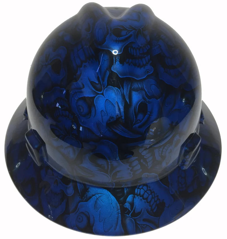 Custom Hard Hat Speedway Blue Insanity Skulls MSA V-Gard Full Brim