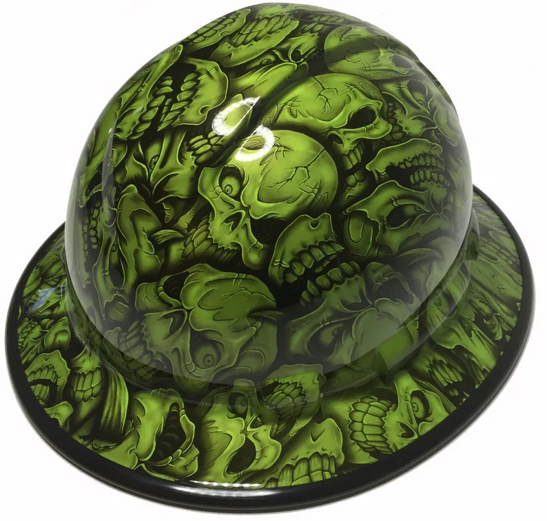 Custom Hard Hat Sublime Green Insanity Skulls Ridgeline Full Brim With Black EdgeGard
