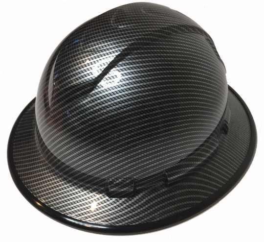 Custom Hard Hat True Weave Carbon Fiber Hydro Dipped W/ Black EdgeGard Full Brim RidgelinePyramex Ridgeline Features: The Ridgeline hard hat is the ultimate combination of high performance impact protection and exceptional personalized comfort. Made from ABS material this thermoplastic resin is a lightweight material that combines strength and rigidity. Low profile design Offers a low center of gravity for better balance Rear padded suspension Provides additional level of comfort on the wearers' neck Vented pressure pad Keeps the straps in place providing an additional level of comfort Easy to grasp triangle knob Adjusts the suspension from 6.5 to 8 inch hat sizes Swinging hinge points Allows you to find the most comfortable position on the back of your head Meets ANSI Z89.1-2009 Standards, Type I, Class C, G, and E CSA Z94.1-05