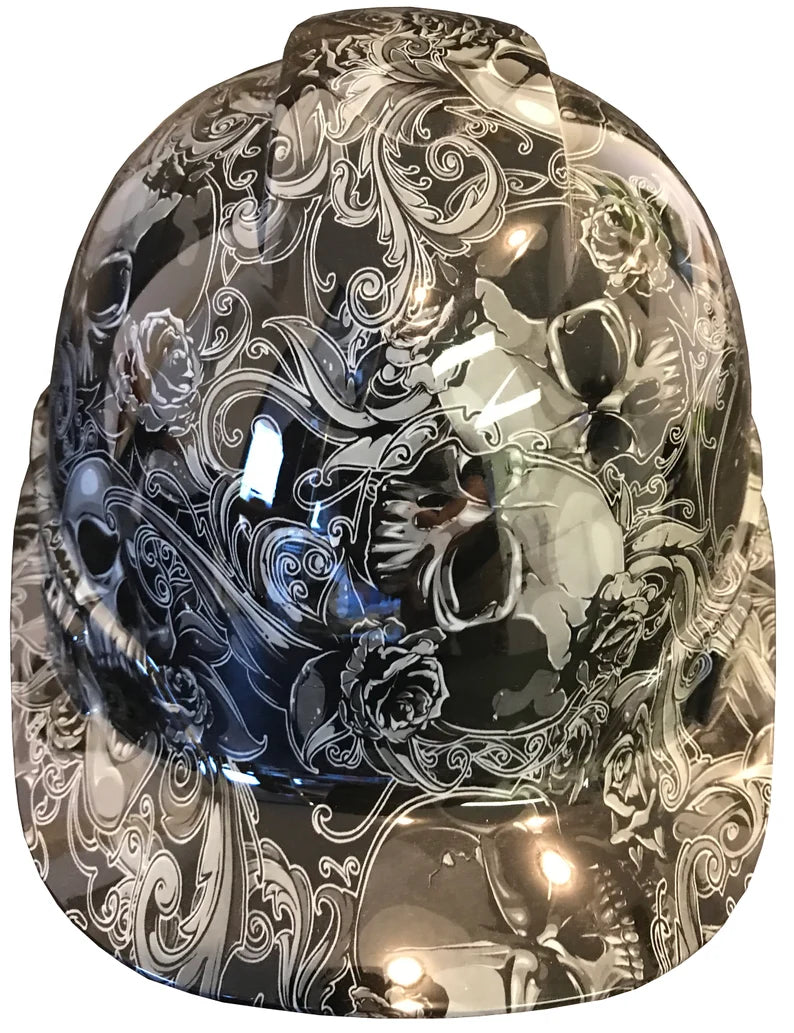 Custom Hard Hat White Filigree Skulls Cap Style Ridgeline