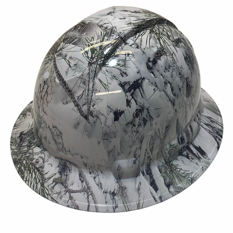 Custom Hard Hat White Thunder Ridge Camo Full Brim Ridgeline