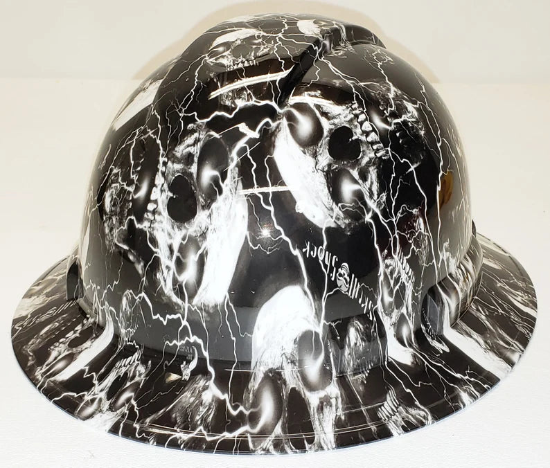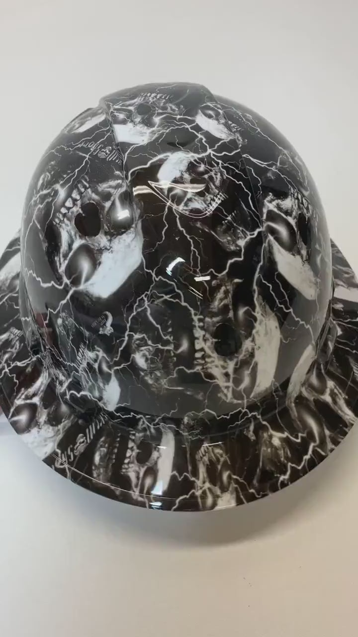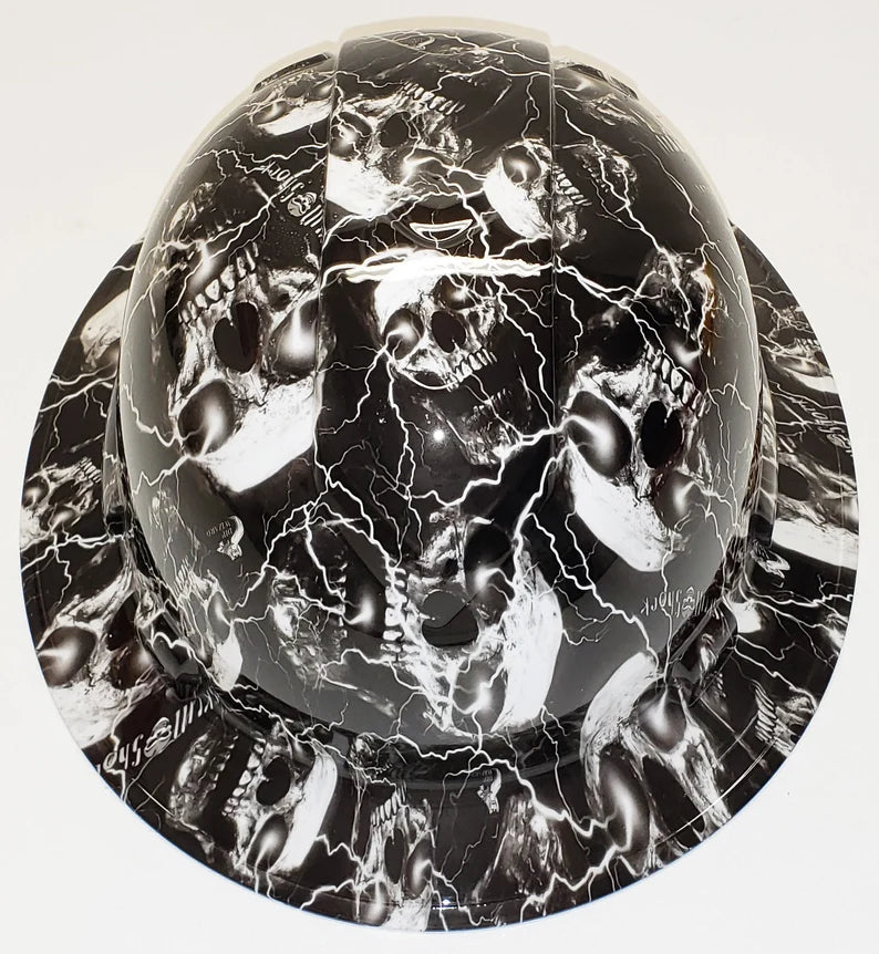 Custom Hydro Dip Hard Hat High Voltage Skulls Full Brim Pyramex Ridgeline Protective Helmet