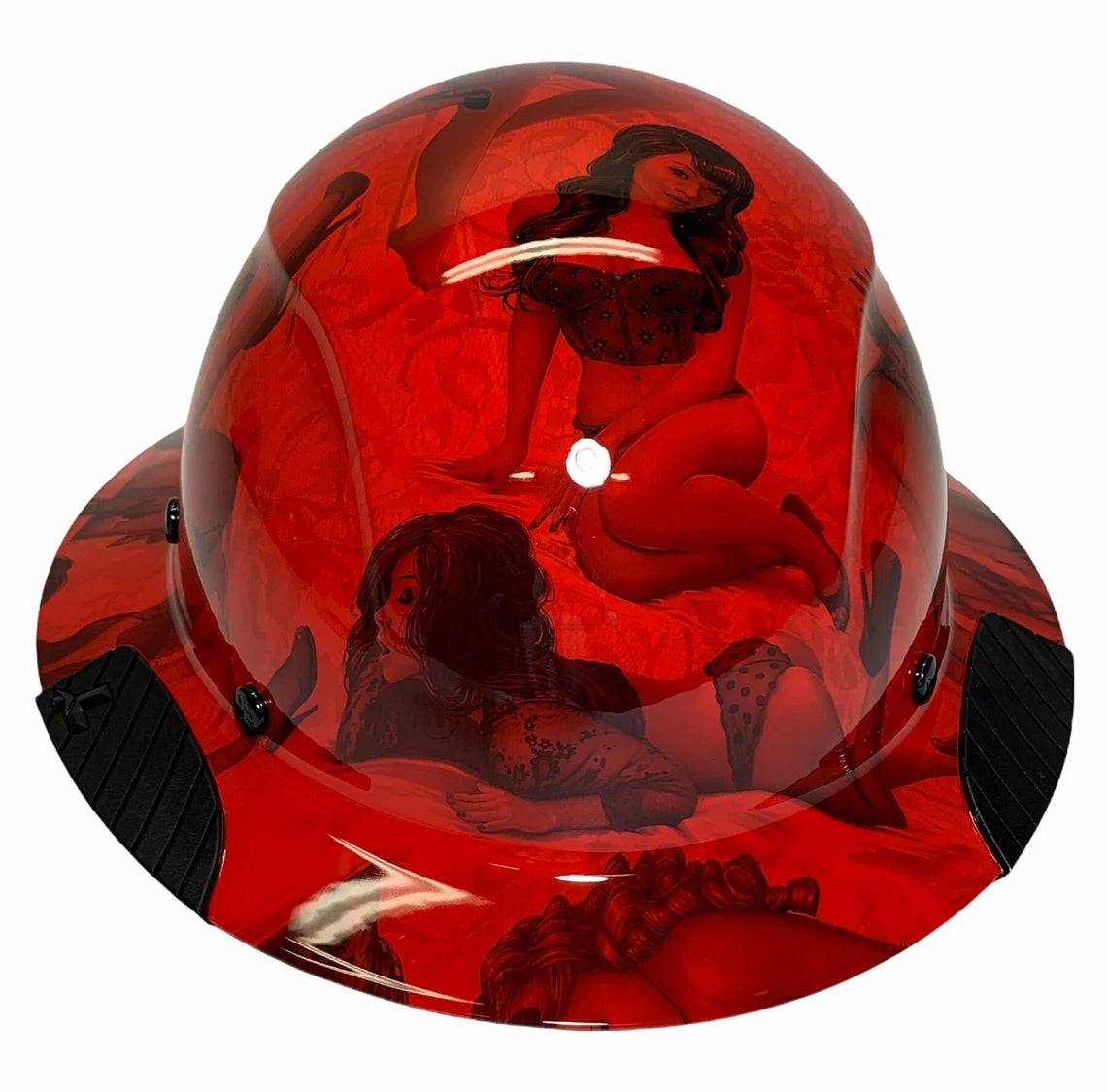 Custom Hydro Dip Red Pin Up Girls Lift Fiber Resin Full Brim Hard Hat