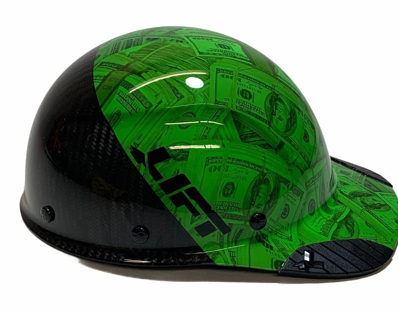 Custom Hydro Dipped Black and Green 100 Stacks Lift DAX Fifty 50 Carbon Fiber HDC50C-20GC Cap Style Hard Hat
